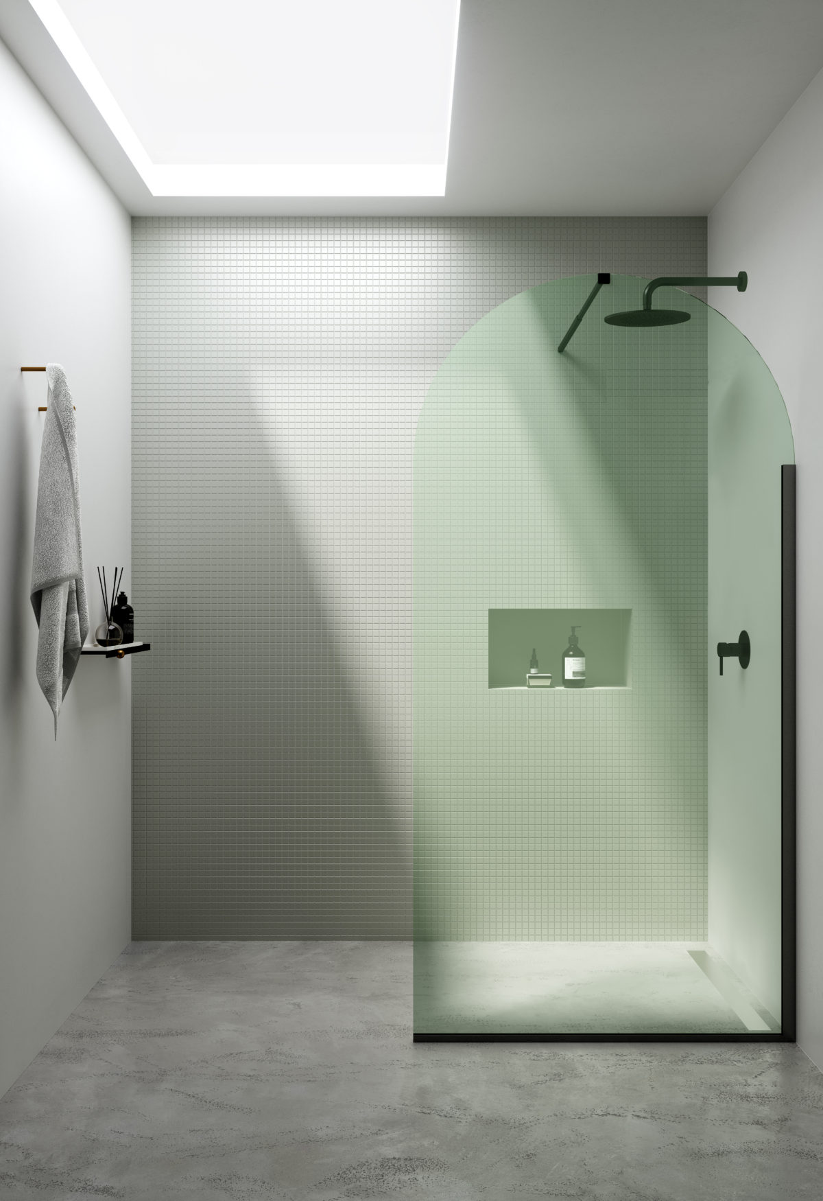 Le béton brut étant poreux, il n’est pas recommandé comme sol de douche. En revanche, il est adapté à un usage mural, à condition de le couvrir d’une protection type «bouche-pores». Par ailleurs, le développement de nouveaux matériaux pour les murs élargit aujourd’hui le champ des possibles dans les walk-in showers. Les panneaux de mousse rigides et les papiers peints hydrofuges offrent des solutions décoratives inédites.