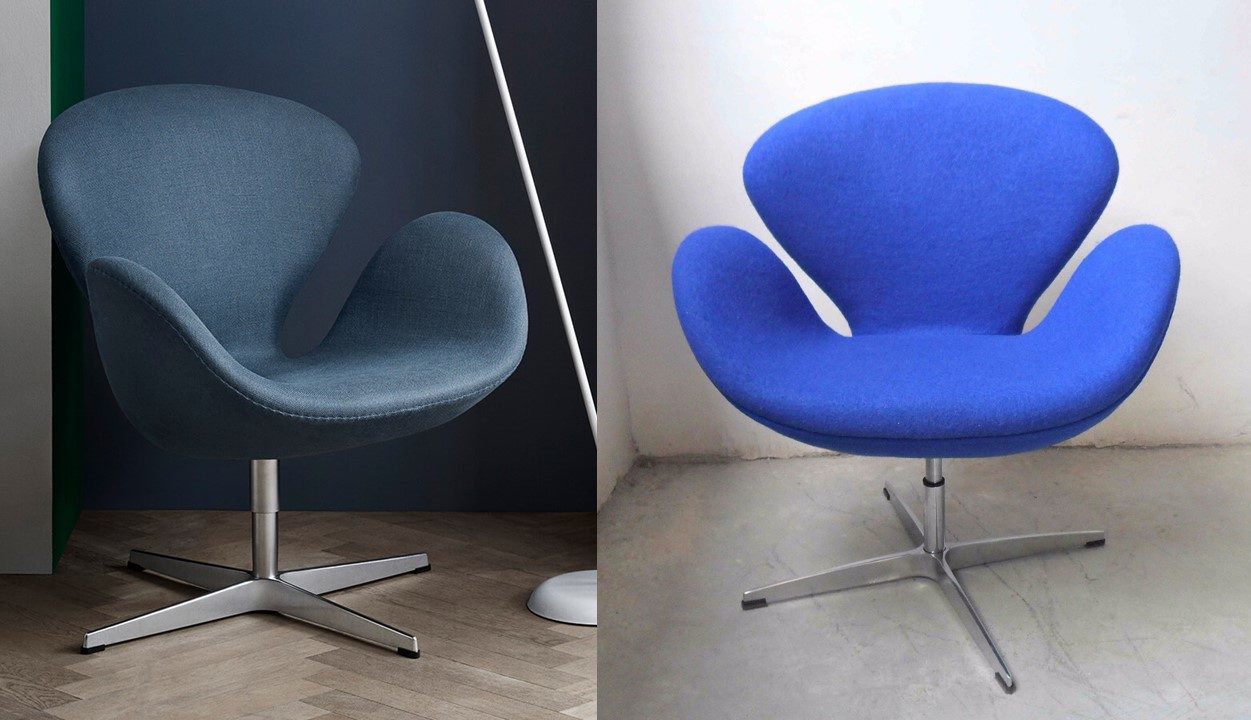 À gauche, le vrai fauteuil Swan de Fritz Hansen. À droite, une copie.