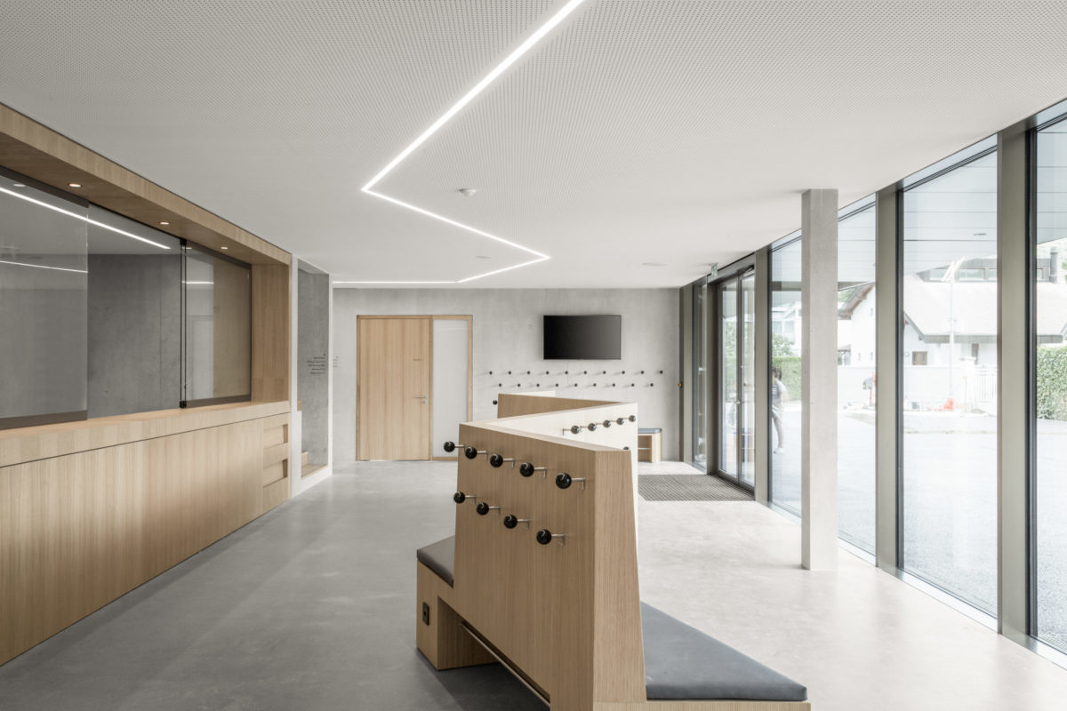 Le béton brut confère une certaine robustesse, en accord avec l’affectation, procurant une bonne durabilité ainsi qu’un sentiment de protection.