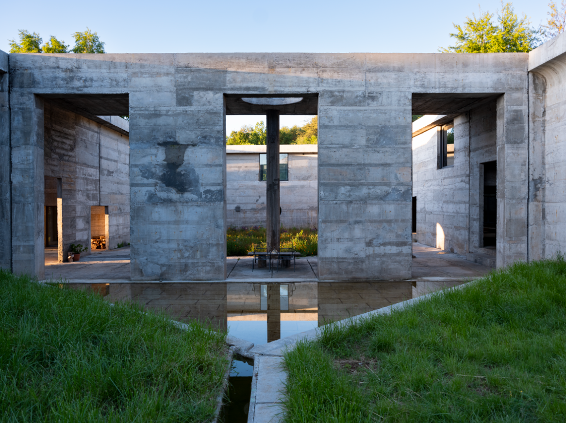 Source: © Mads Mogensen. Parution EC1/2024.Au pied des Andes, les architectes et artistes Sofia von Ellrichshausen et Mauricio Pezo ont construit leur nouvelle maison dans une zone isolée et sauvage, entourée de forêts et de petits ruisseaux descendant de la montagne. Ce lieu de vie sert aussi d’atelier et de galerie d’art. D’une taille impressionnante et sobre à la fois, l’ouvrage est une grande structure en forme de cloître qui évoque une vie retirée et calme.