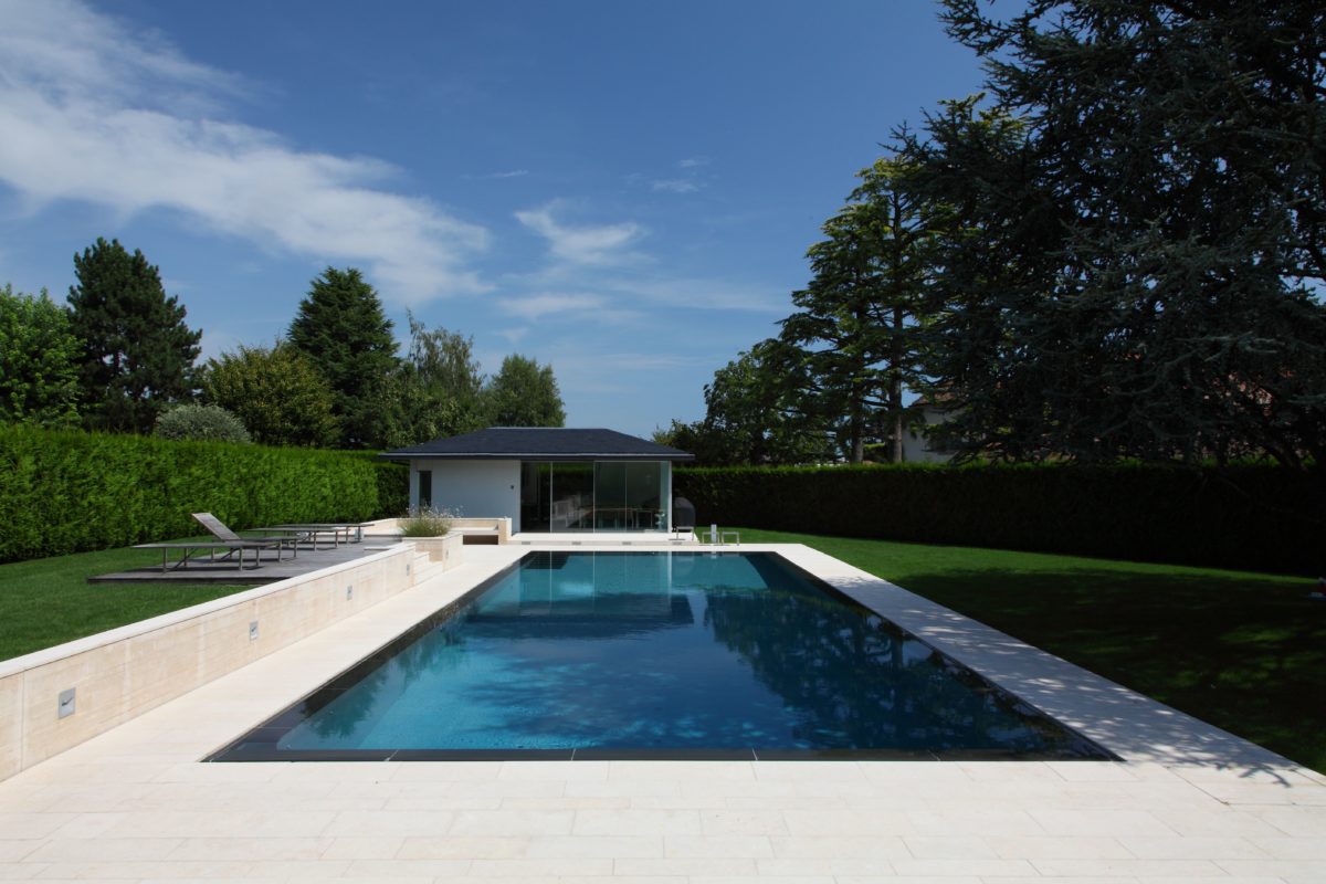 La piscine à débordement est une piscine enterrée, dont l’eau déborde du bassin de nage vers un deuxième bassin de récupération – le bac tampon – situé en contrebas. Le principe est le suivant : l’eau s’écoule en permanence sur les bords de la piscine, elle est récupérée dans une goulotte avant de rejoindre le bac tampon où elle est filtrée ; ensuite, grâce à une pompe très puissante, elle est renvoyée dans le bassin de nage.