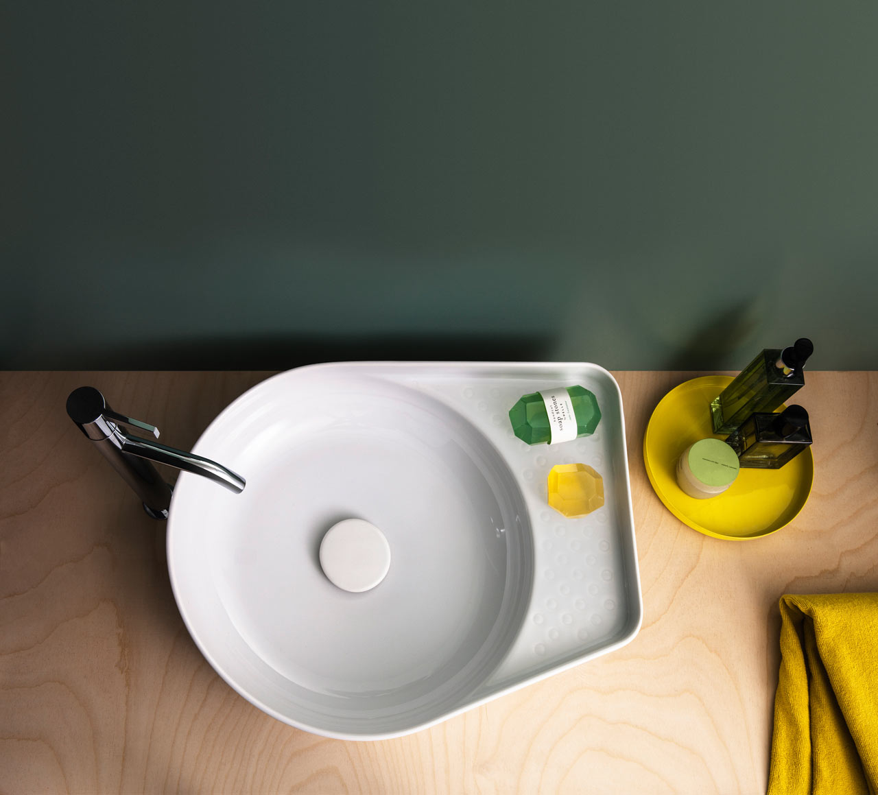 Dans les années quarante, de nombreux logements n’ont pas encore de salle de bain. «Les premières installations sanitaires sont apparues dans les maisons privées au début du 20e siècle. Mais il a fallu attendre la fin de la Seconde Guerre mondiale pour qu’on les trouve également dans les campagnes», raconte Olivier Pauchard (« L’eau au cœur de la ville »). À cette époque, la salle de bain est encore imaginée comme une pièce où faire ses nécessaires ablutions. Immaculée, hygiénique, elle se pare souvent de blanc tel un laboratoire. Se développe une vision moderniste de l’aménagement de la pièce d’eau qu’illustre à merveille le lavabo Carina 5100, dessiné par le designer Hans Bellmann en 1953 pour Kera AG Laufenburg.