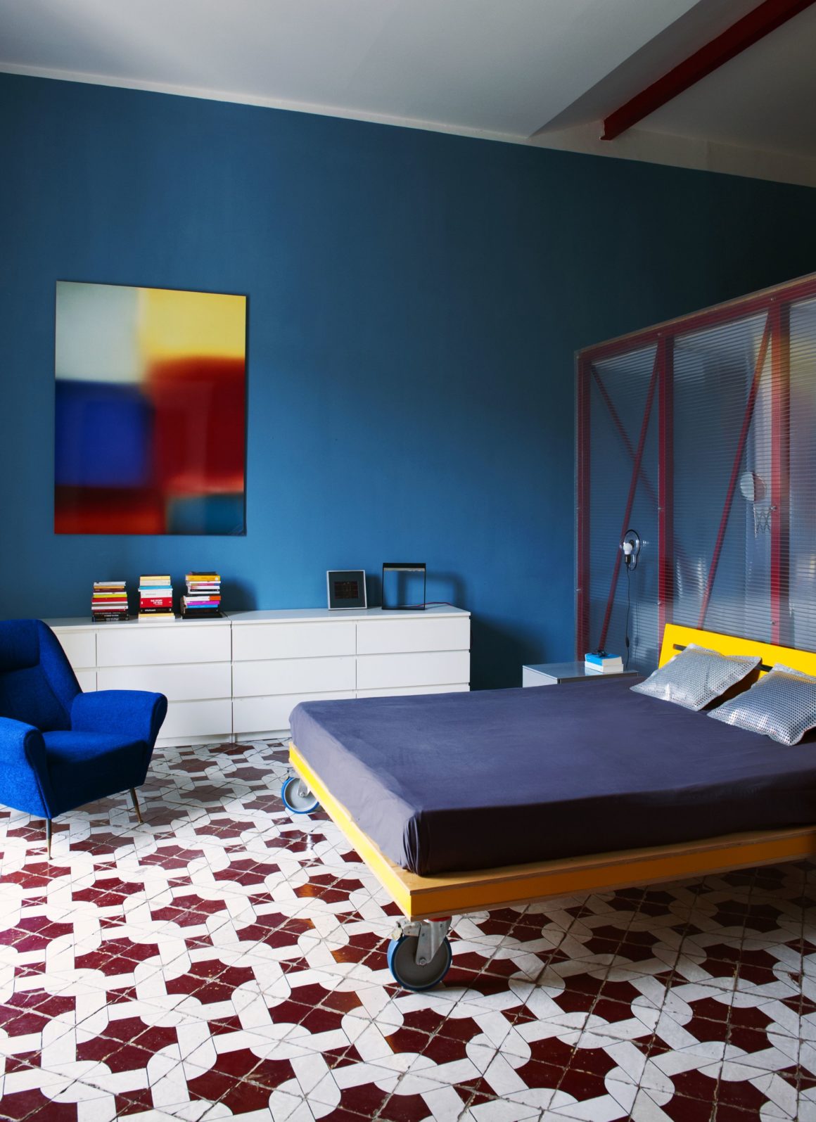Chambre à coucher de la résidence atelier pour jeunes artistes. Au mur, œuvre de Mario Pellegrino.