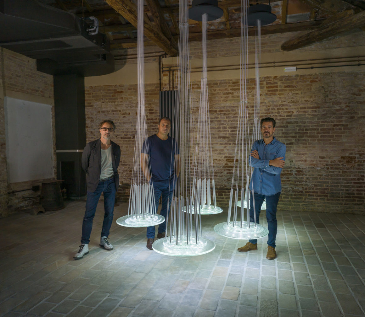D’un restaurant gastronomique au Japon à la scénographie muséale, des boutiques d’horlogerie au design de meubles, de l’architecture de résidences privées aux luminaires en verre soufflé, depuis plus de trois décennies, Aurel Aebi, Armand Louis et Patrick Reymond développent un travail créatif aux multiples facettes. Leur solide réputation, ils la doivent à leur capacité à éveiller la curiosité, tout en véhiculant une forme de poésie et de légèreté.