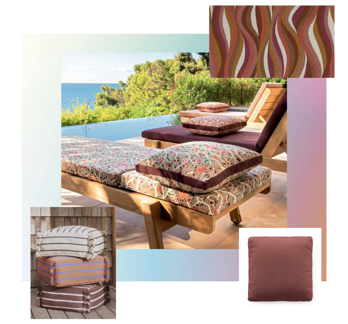 De nombreux designers et architectes marient ainsi des meubles de jardin en bois qualitatifs avec les plus beaux tissus du moment.