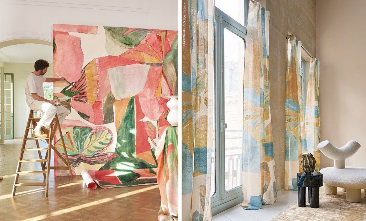 Source: © Casamance3. Le papier peint et le tissu Agafay d’Adrien Testard