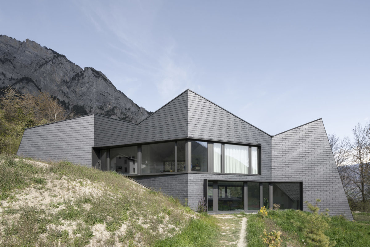 Matière à dialogues entre une montagne souveraine et une rivière capricieuse, cette maison double puise son inspiration des contours de l’emblématique crête du Haut de Cry (Valais). Ce volume mouvementé donne son caractère unique à la villa et séquence les espaces intérieurs. Il abrite deux habitations distinctes, l’une sur l’autre, qui permettent à deux frères et de leurs familles de vivre ensemble tout en gardant une certaine privacité.