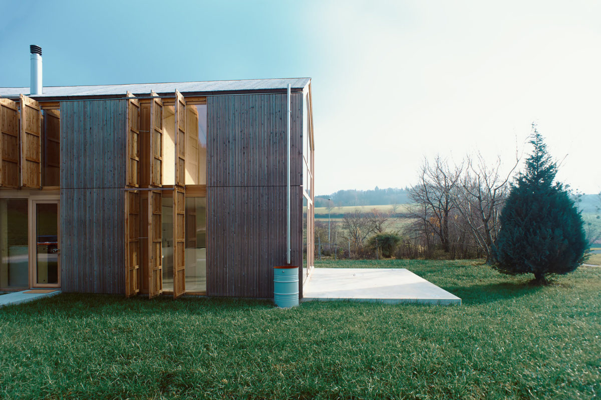 Source: © Studio No3 – Alexandre Pierre Albert. Parution CB1/2020La première Minimhouse a été construite par le bureau U15 à Murist dans le canton de Fribourg en 2020. Il s’agit d’une typologie de villas clés en main qui propose un scénario alternatif à la villa traditionnelle. Elle repose en effet sur un mode de construction simple, compact, aux multiples déclinaisons, qui peut être agrégé à petite échelle afin de produire des quartiers à la densification douce.